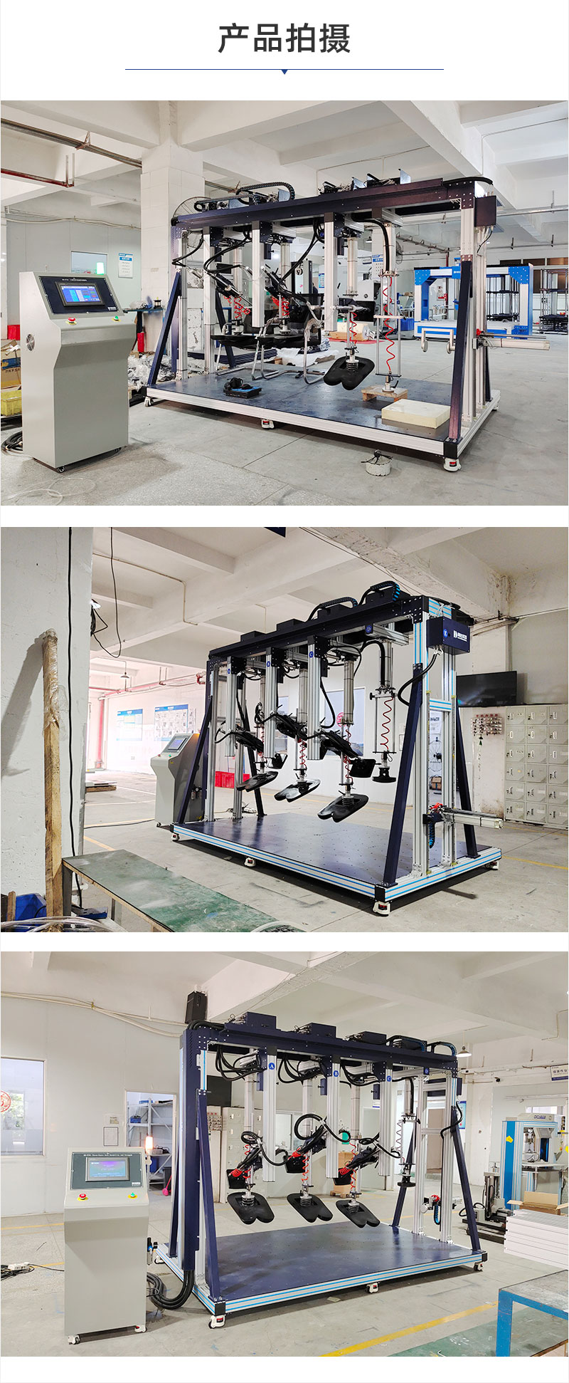 HD-F761三座位沙發疲勞試驗儀(自動)是用3塊仿人臀部的剛性坐墊進行加載,記錄加載曲線進行分析數據,以評定沙發的硬度值及疲勞形變等級。